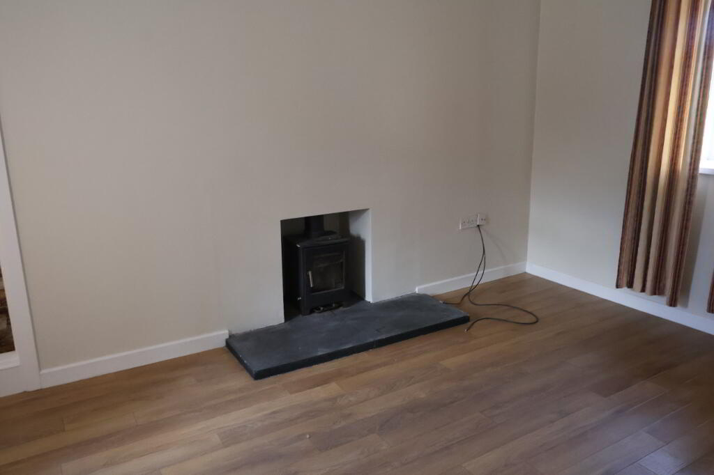LIVING ROOM: 4.5m x 3.0m with Log burning stove and tiled hearth.