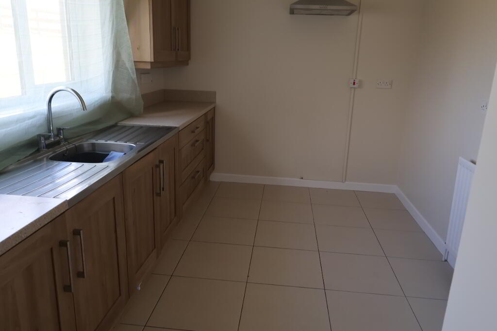 KITCHEN-DINER: 3.6m x 2.6m range of eye and low level fitted units with s/s sink, plumbed for washing machine and space for cooker with s/s extractor hood overhead and tiled floor.