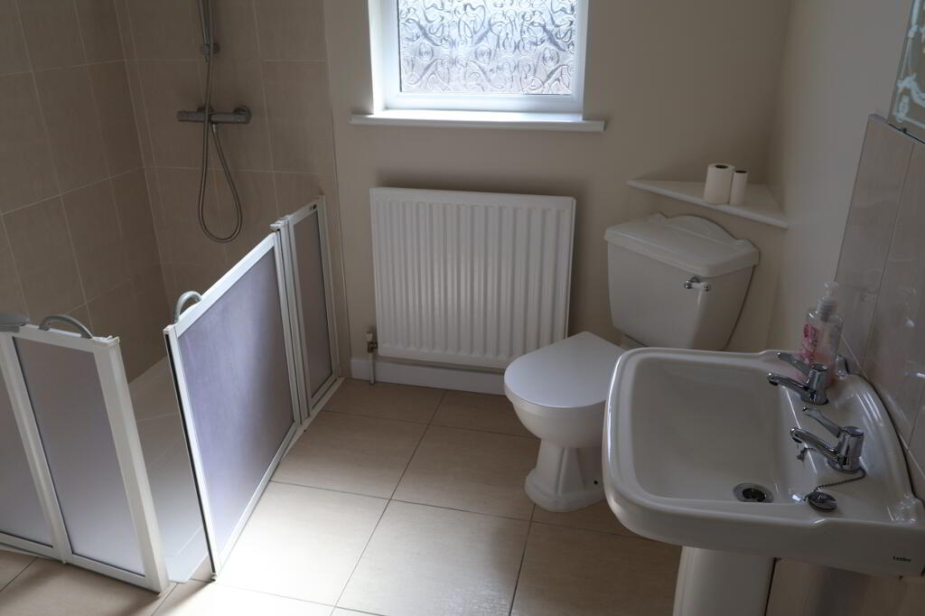 BATHROOM/WET ROOM: 2.3m x 2.3m walk-in shower, toilet and wash hand basin, tiled floor and part tiled walls.
